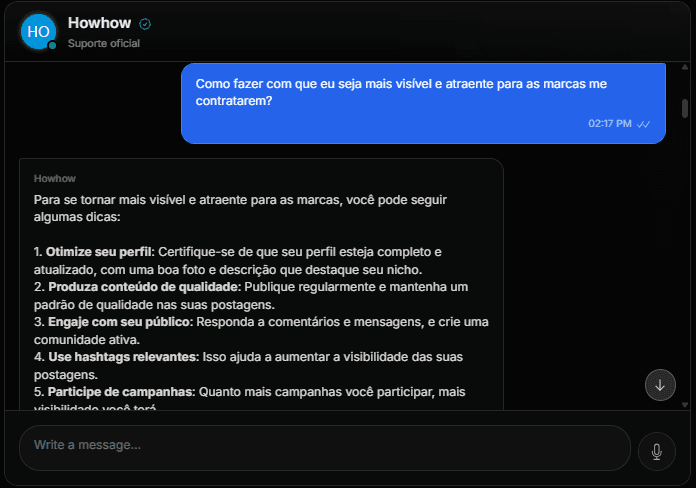 A Howhow conecta agências, marcas e creators em um fluxo profissional de colaboração.
